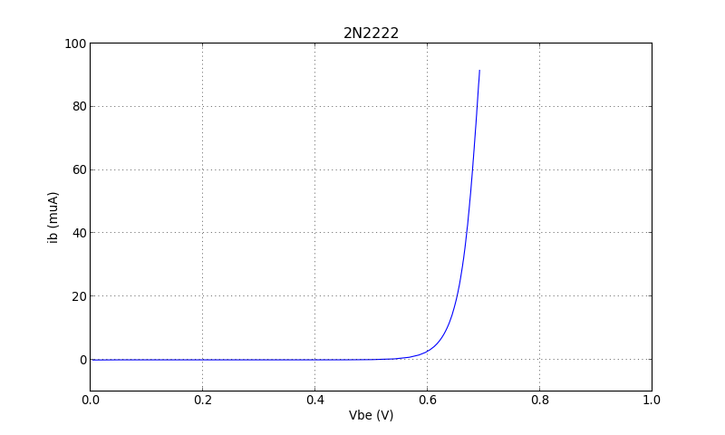 La fonction suivante effectue le tracé de la caractéristique ib=f(Vbe). La tension S1 est réglée à sa valeur maximale de manière à être dans la zone de fonctionnement linéaire. Le nombre de points n0 est fourni en argument.